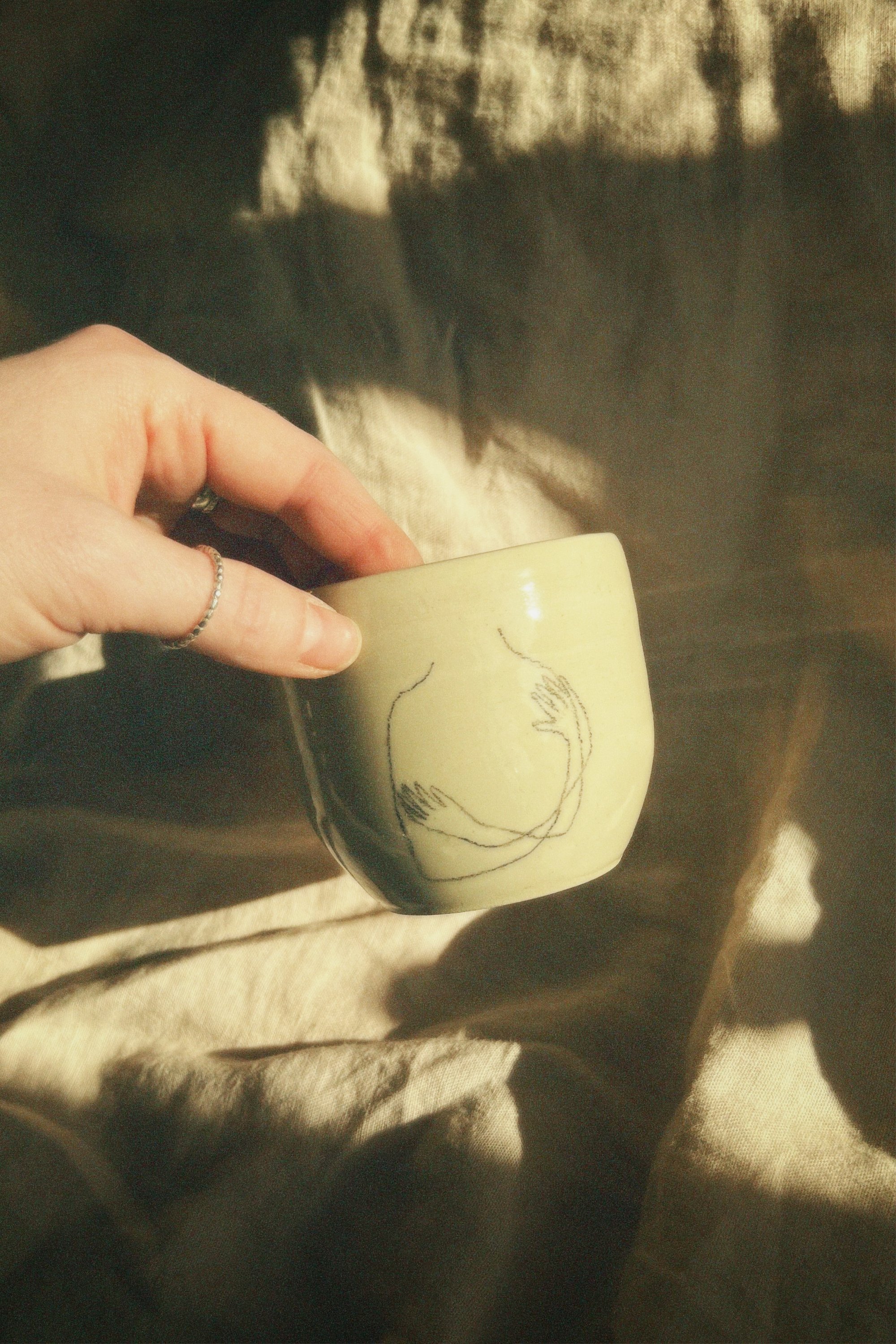 lydia is making beautiful ceramics and i am very happy we came up with the same idea of combining what we love to do. we started prototyping some mugs with drawings on them. there is put a lot of love and time in each of them, all of them are unique pieces ☕️